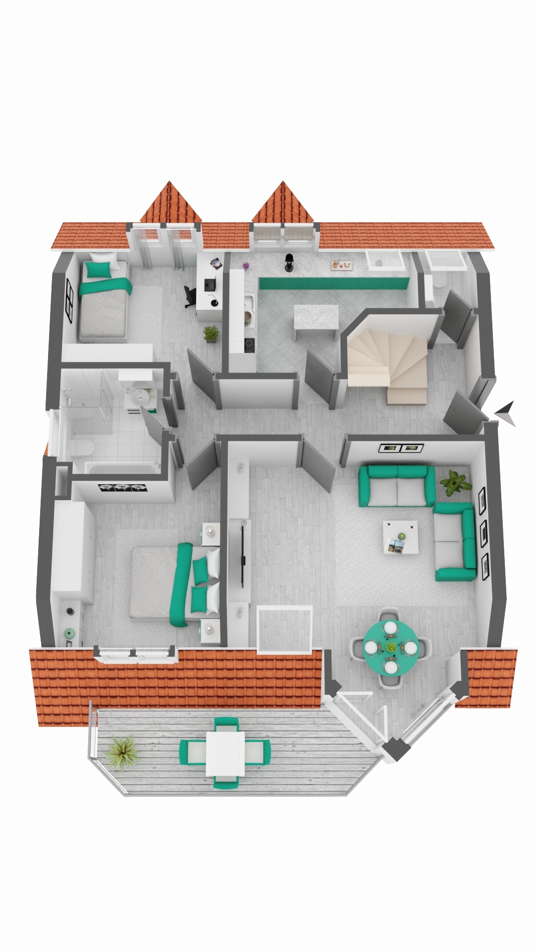 • in der ersten Wohnebene erwarten Sie ein helles und freundliches Wohnzimmer, das durch bodentiefe Fenster viel Licht einfängt, zwei geräumige Schlafzimmer, die mit viel Liebe zum Detail eingerichtet sind. Das luxuriöse Badezimmer verfügt über eine Badewanne und eine Dusche, um Ihren Alltagsstress zu vergessen. Ein Gäste-WC rundet diese Ebene ab.
