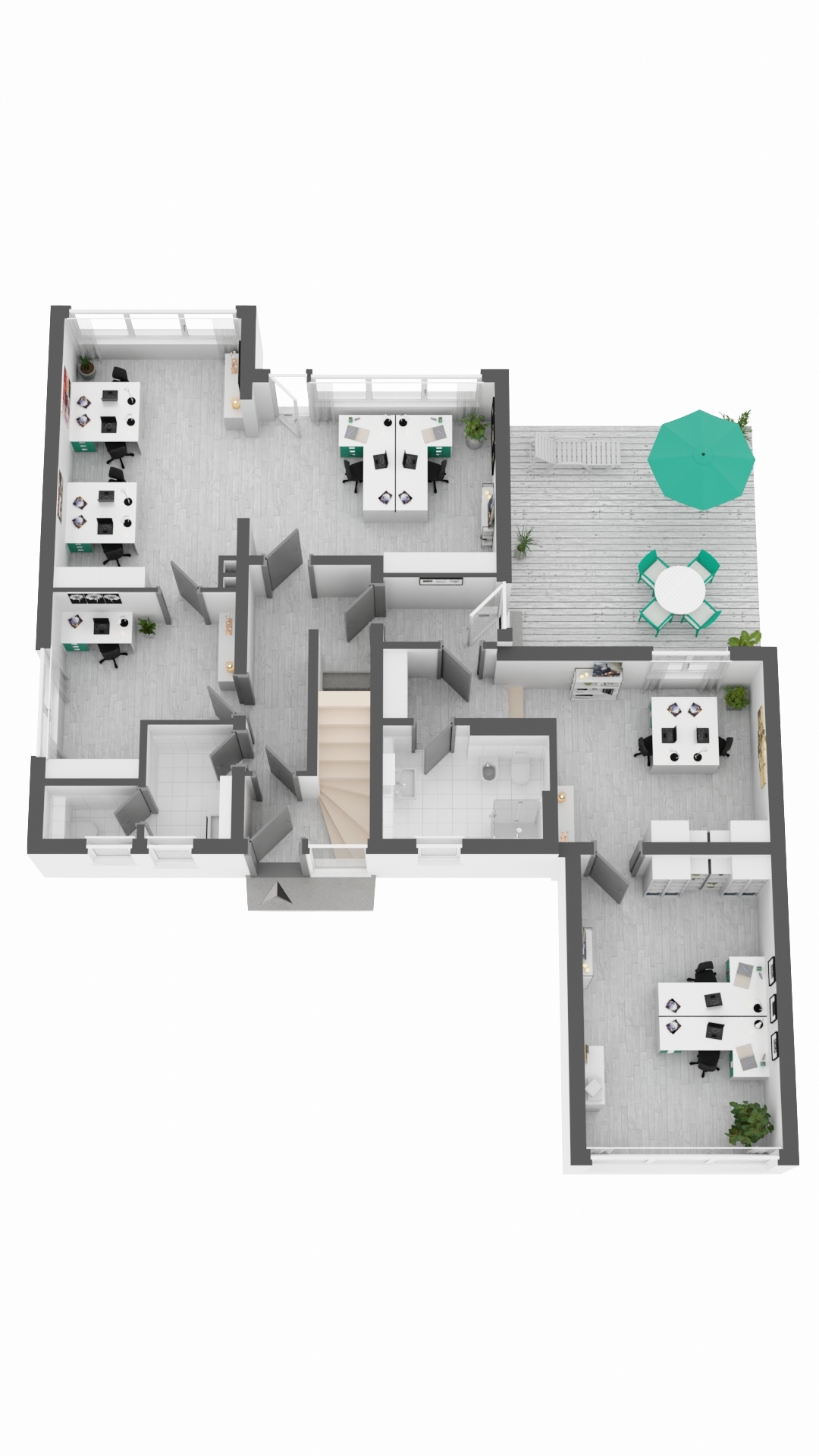 Moderne, helle Büroebene mit 4 Räumen und zwei Terrassen für kreatives und entspanntes Arbeiten. Einige Highlights: eine hochwertige Küche mit Top Ausstattung, 1 Gäste-WC und ein großes modernes Duschbad, viele große Fenster, dadurch helle Räume, hochwertige Oberböden uvm.